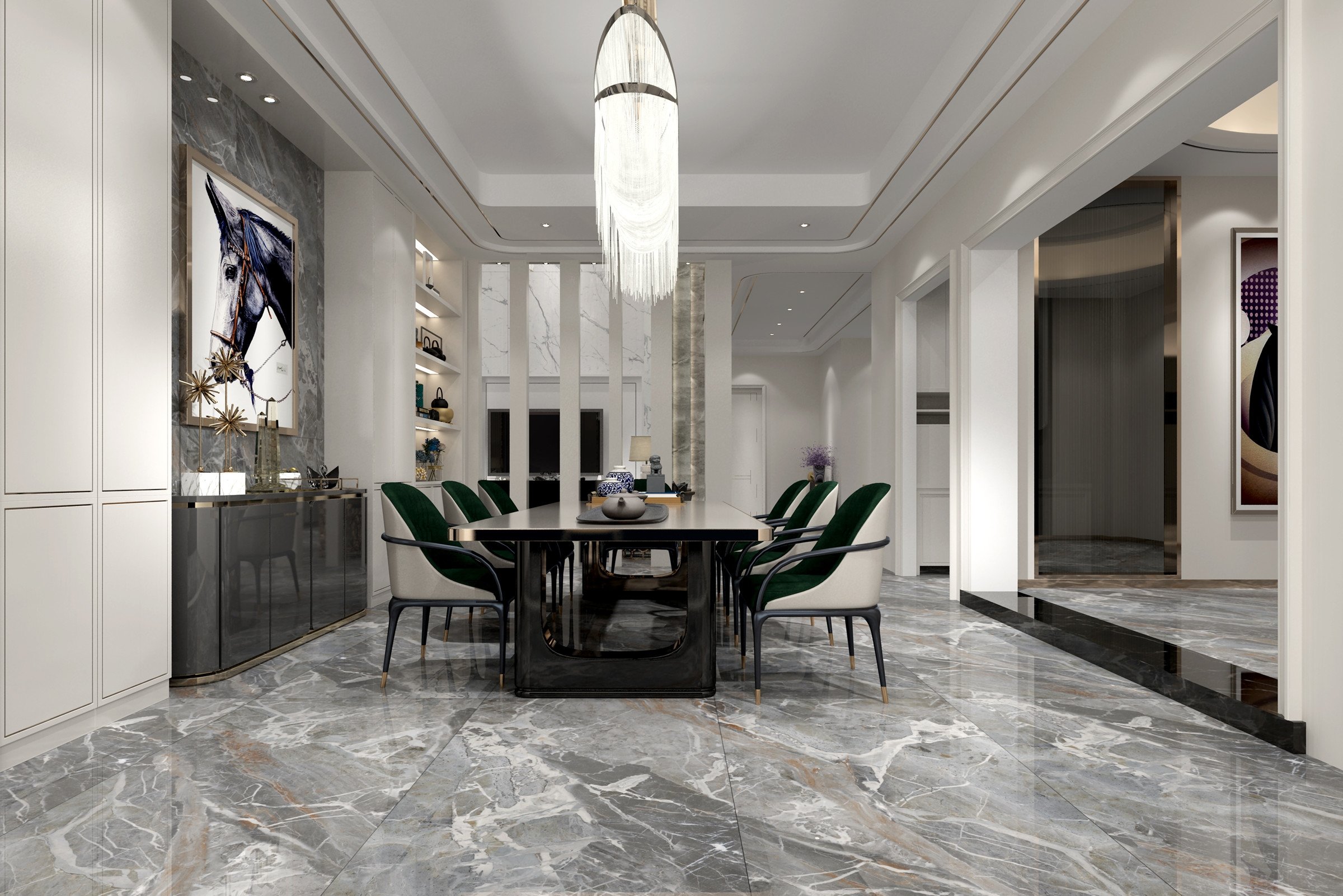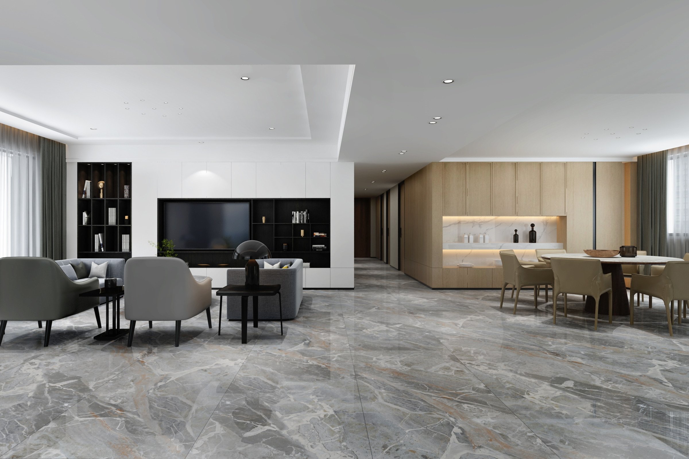 洋溢著獨(dú)特風(fēng)格的泰坦灰源自土耳其,磚面處處體現(xiàn)著當(dāng)代時髦大氣的風(fēng)格,夸張的線條與色塊勾勒出不一樣的視覺感受,提升了空間的氣質(zhì)感,使空間看起來充滿著自由的氣息。